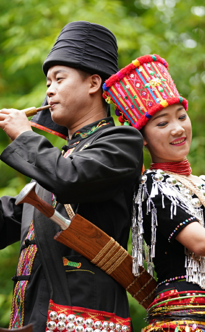 云南壯族主要聚居在文山州,人口114萬,民間的村寨大多依山傍水。壯族擅長種植水稻,有太陽崇拜和長老崇拜的風(fēng)俗,視銅鼓為重器,厚愛銀飾,善烹制五色花米飯,能歌善舞,熱情好客。進(jìn)入景區(qū)壯族村,迎面有祭祀龍王的龍柱,兩邊是先民繪制的天王崖畫和為紀(jì)念傳說洪水泛濫時幫助先民度過劫難而建的石葫蘆亭。祭祀玉皇大帝的昊天閣和傳說能驅(qū)邪納福的碩大銅鼓聳立在廣場兩側(cè)。桿欄式和麻欄式民居、壯族青年社交休憩的“情廊”、村...